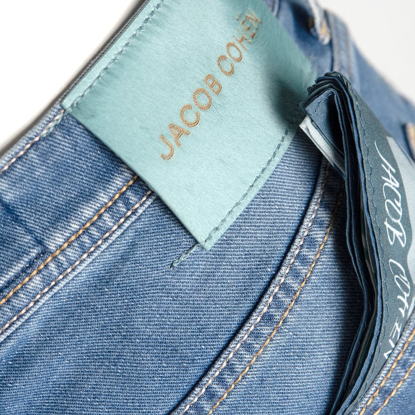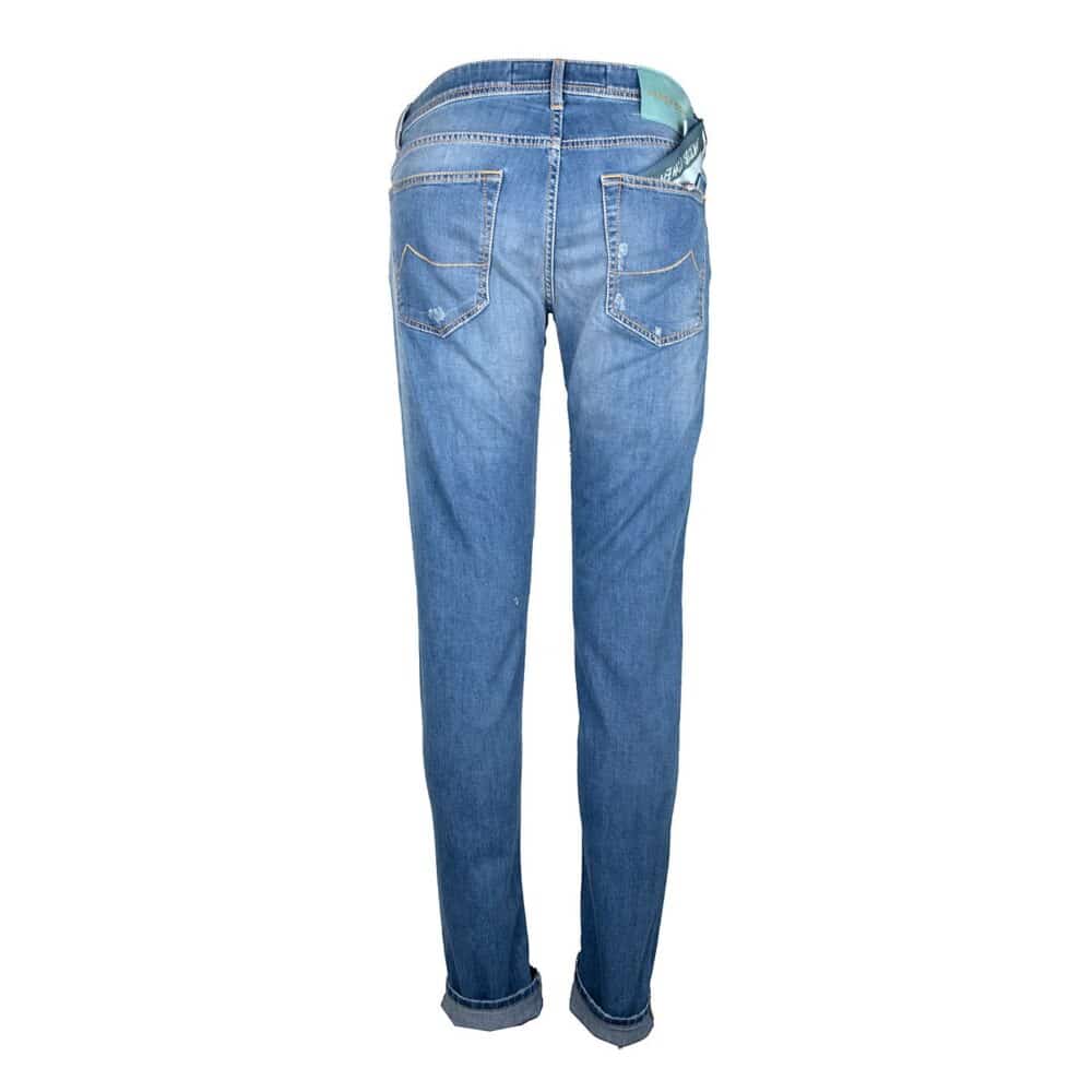 Jacob Cohen destroyed jeans uit de S/S 2023 collectie. Lichte washing. De patch is van paardehaar.