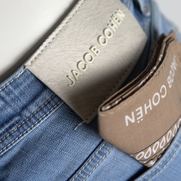 Mooie lichtkleurige jeans model Nick Slim van Jacob Cohen uit de S/S 2024 collectie. witte patch