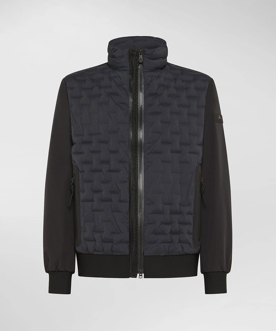 Dons gevoerde jas (voorkant) met soft shell mouwen.manchette aan de mouwen,binnenzakken.